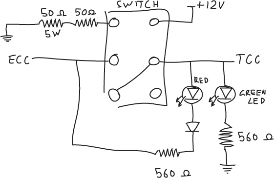 Red LED indicates the torque converter locked up but the ECC unit has not locked it up, in other words, switch has locked it up.